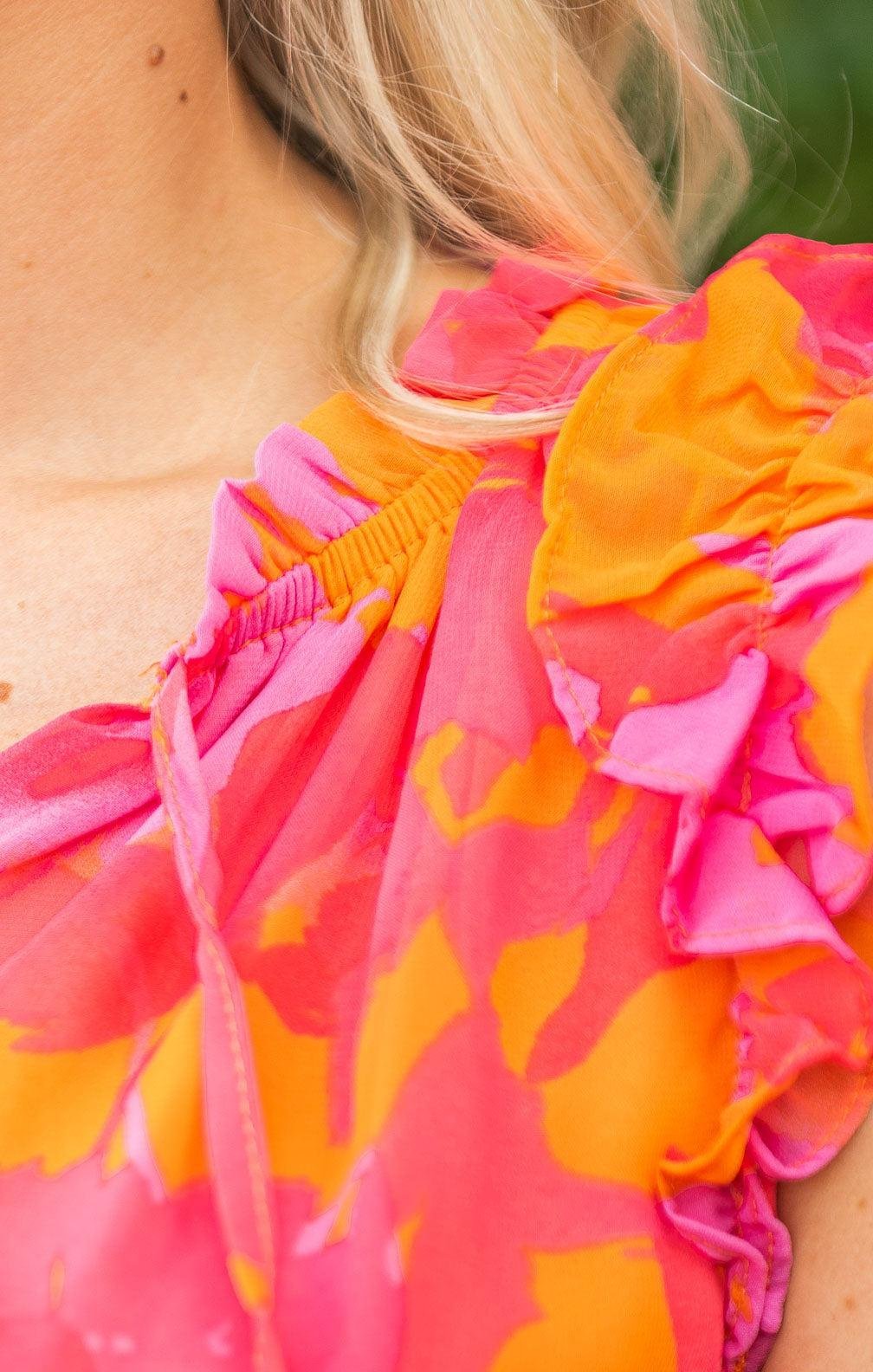- Ruffle Neckline with Self Tie